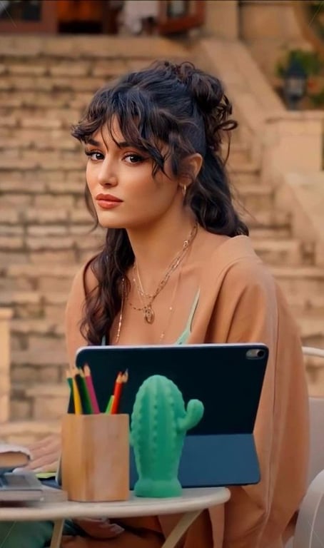 До речі, для образів поза серіалом Ханде просить Алі робити їй більш натуральні макіяж з ефектом нової троянди. Зазвичай він використовує олівець холодного пурпурового відтінку, а всю поверхню губ наносить помаду з легким блиском. Контраст олівця та помади візуально надає обсягу та сексуальності.