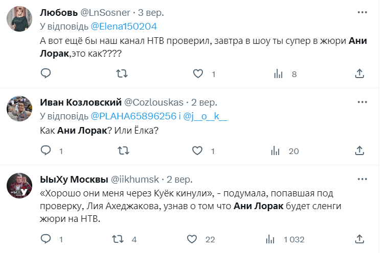 Втім, у Twitter активно обговорюють Лорак в шоу. Деякі росіяни навіть натякають правоохоронним органам країни-терориста перевірити Кароліну на зв'язок підтримки ЗСУ та дискретизації місцевої армії
