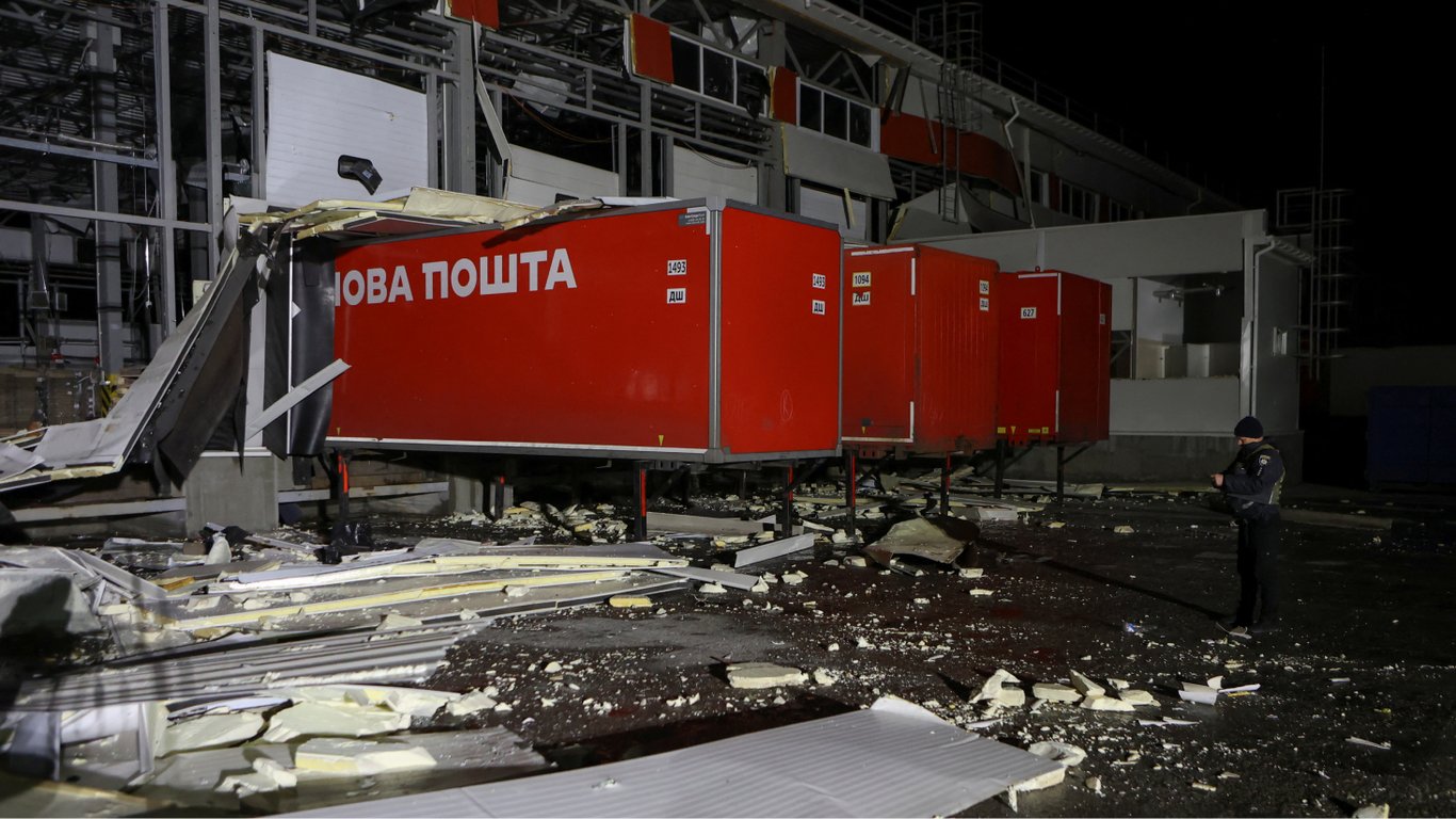 Наслідки обстрілу термінала "Нової пошти". Фото: Reuters