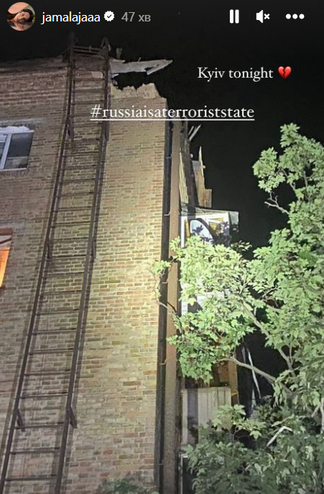 30-річна співачка, яка оголосила про свої заручини, розповіла в Instastories, що не почула тривоги та прокинулась вже від роботи ППО.