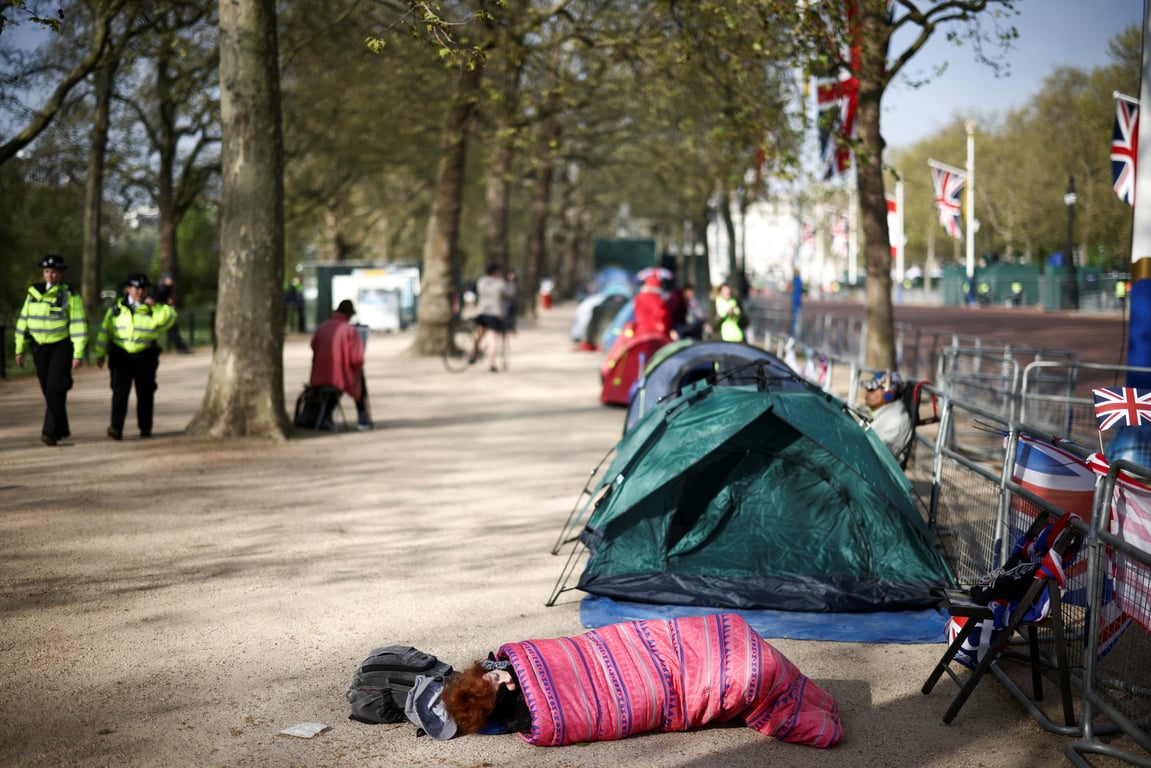 Британці розбивають намети біля Букінгемського палацу та показують паперову Єлизавету II: фотозвіт