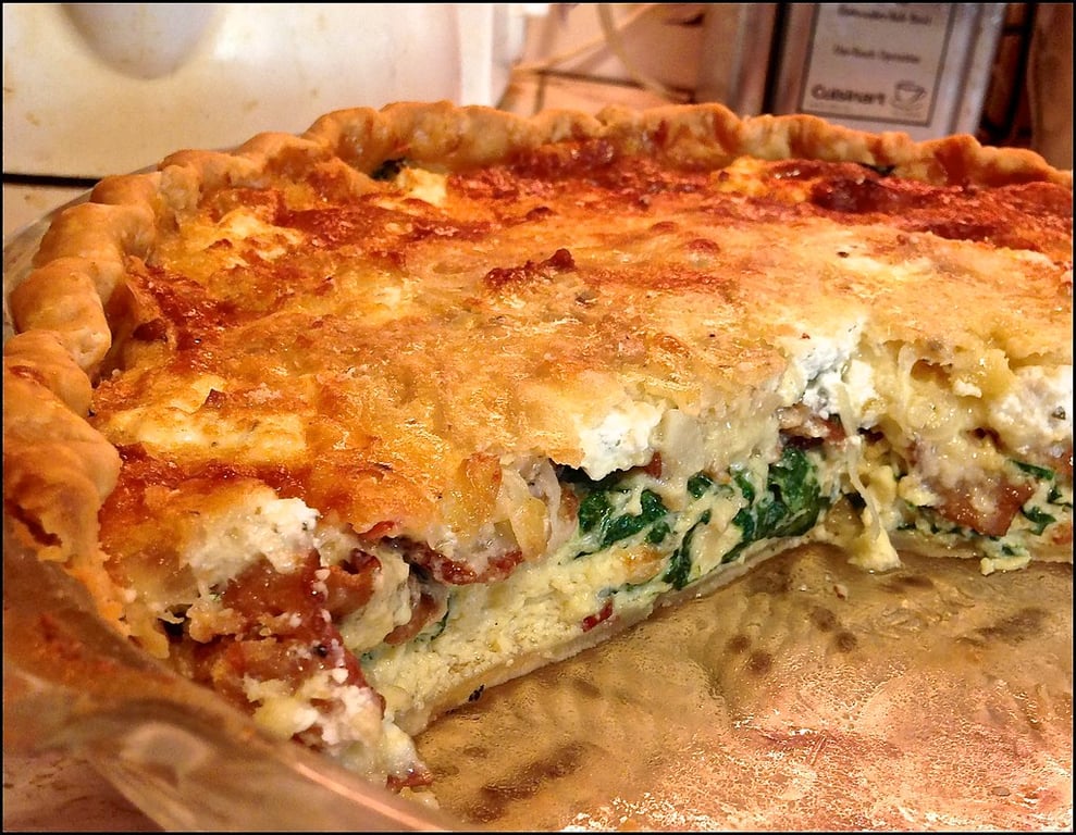 Це відкритий французький пиріг з основою з пісочного (іноді листкового) тіста і начинкою з яєць, вершків та сиру. Варіанти начинок можуть бути різними: від легких овочевих, фруктових, рибних або із суміші зелені до ситних м'ясних або грибних.