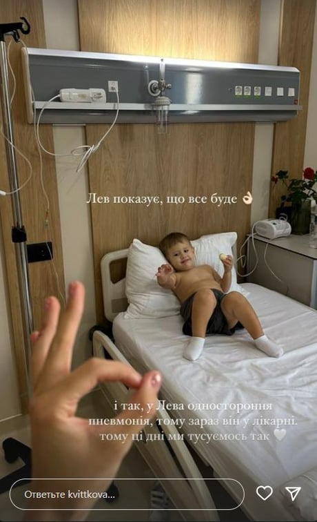 "Я просто у сльозах сповзла по стіні, коли лікар сказав, що у Лева підозра на пневмонію і треба госпіталізувати його. У Лева одностороння пневмонія, тому зараз він у лікарні. Тому ці дні ми тусуємося так", — поділилася Даша.