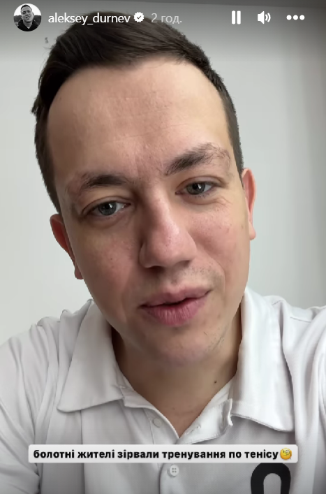 Близького друга Дантеса, шоумена Дурнєва, денний ракетний обстріл Києва застав на тренуванні. Почувши перші звуки роботи ППО, Олексій продовжив з тренером грати в теніс. Втім, коли пролунав гучніший вибух, всі пішли до укриття, в якому Дурнєв записав відеозвернення до підписників.