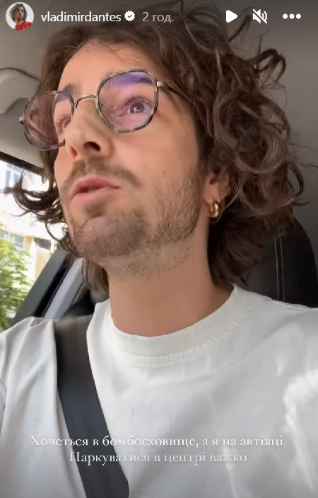 А ось колишній чоловік Дорофєєвої, шоумен Володимир Дантес, тривалий час не міг знайти, де припаркувати машину. Він знімав сторіз за кермом, і на відео можна навіть було почути звуки роботи ППО.
