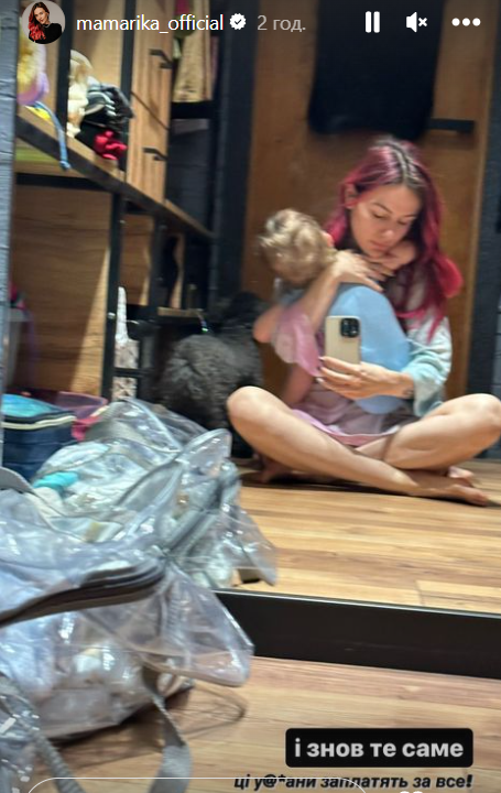 Нічну та денну повітряну тривоги співачка провела разом з півторарічним сином в гардеробі.