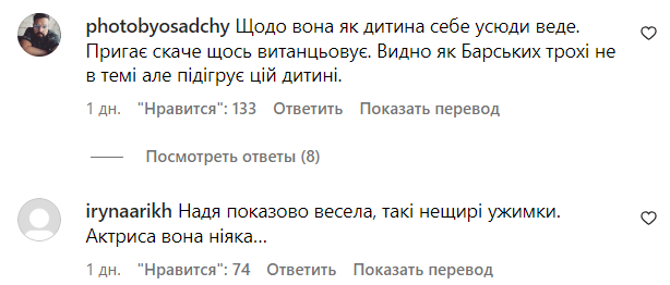 Звісно, після того як Надя розмістила нові кадри з Максом Барських, під ними з’явилися коментарі підписників артистки. Дехто залишив позитивну думку стосовно відео, а в когось з'явилося обурення щодо рівня емоційності співачки.