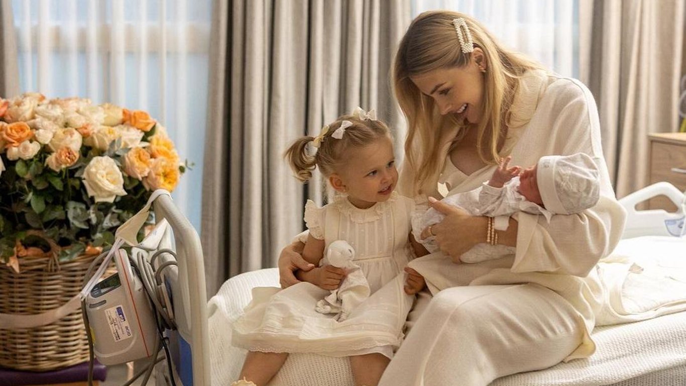 На знімках, якими поділилася Влада Седан, вона позує зі старшою донькою Євою та новонародженою дівчинкою у пологовому будинку. Дружина футболіста вбралася у білосніжний костюм та світле взуття. Образ доповнила довгим волоссям та ніжним макіяжем.