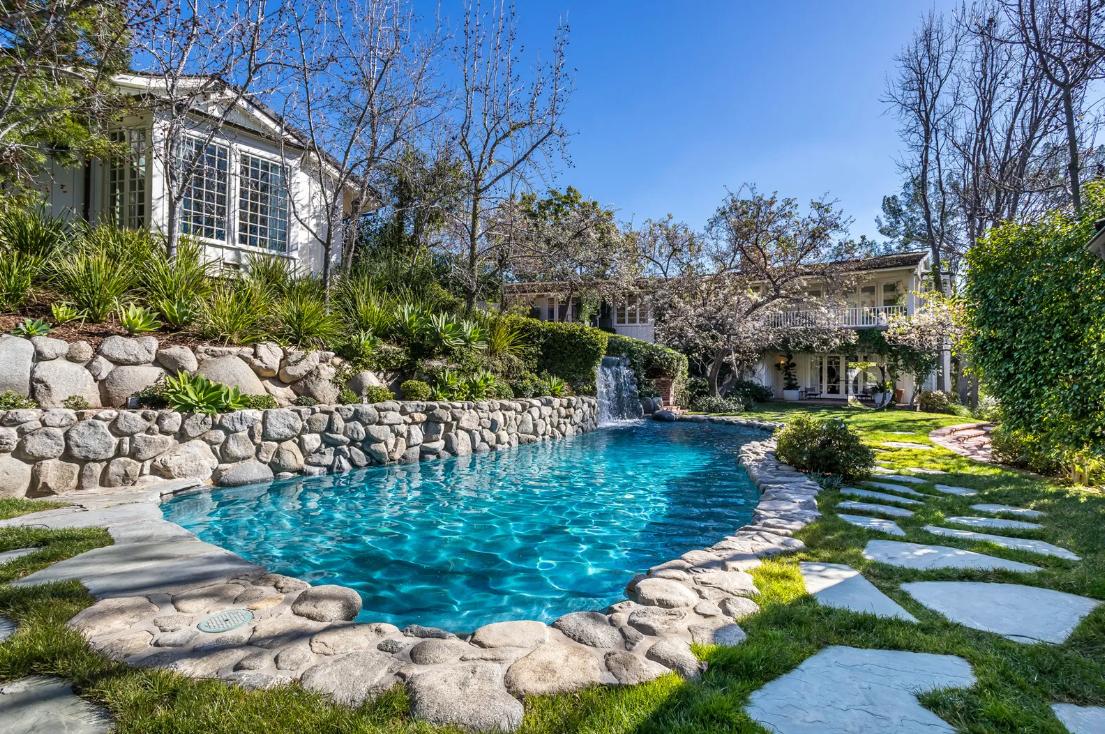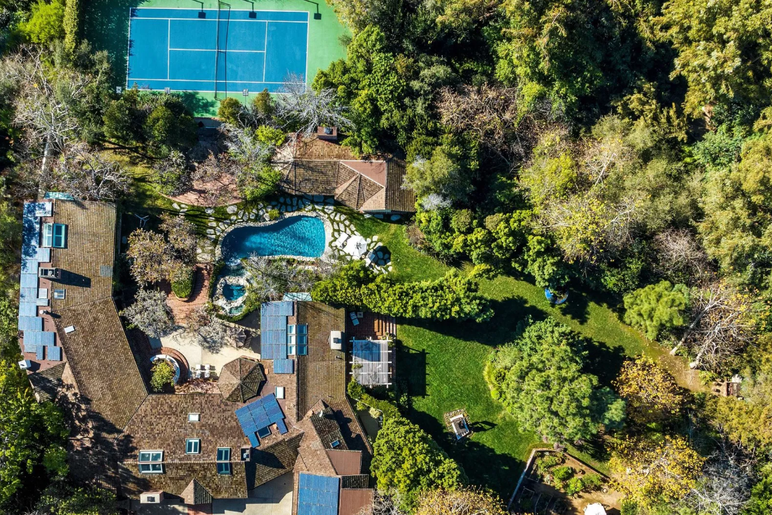 На території маєтку є тенісний корт, басейн із водоспадом, відкритою платформою для його та медитації, більярд. Будинок розташований на більш ніж двох акрах (90 соток). Переважно одноповерхове ранчо має п’ять спалень, шість повноцінних ванних кімнат і три напівванни.