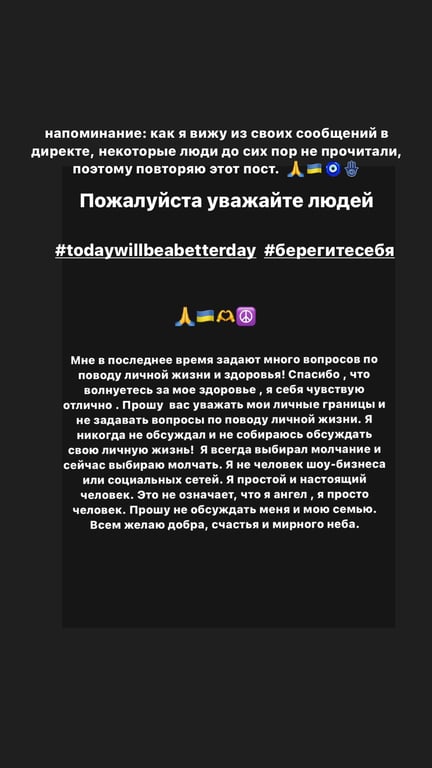 "Прошу вас поважати мої особисті кордони і не ставити запитань стосовно особистого життя. Я ніколи не обговорював і не маю наміру обговорювати своє особисте життя! Я завжди обирав мовчання і зараз обираю мовчати. Я не людина шоубізнесу чи соцмереж. Я проста і справжня людина. Це не означає, що я ангел, я просто людина. Прошу не обговорювати мене і мою родину", — звернувся до шанувальників Налчаджиоглу.