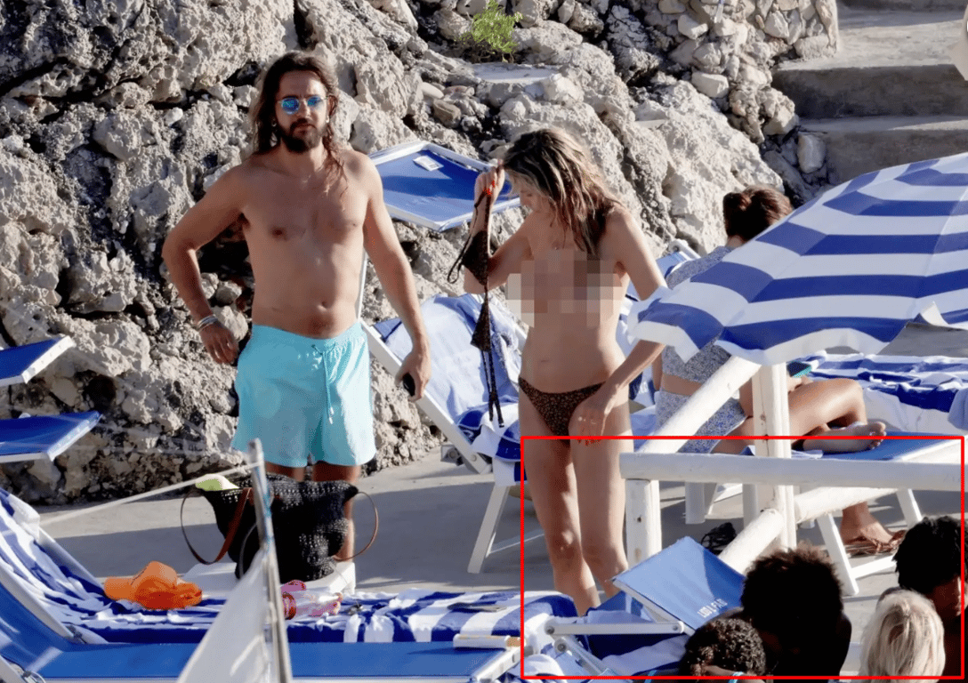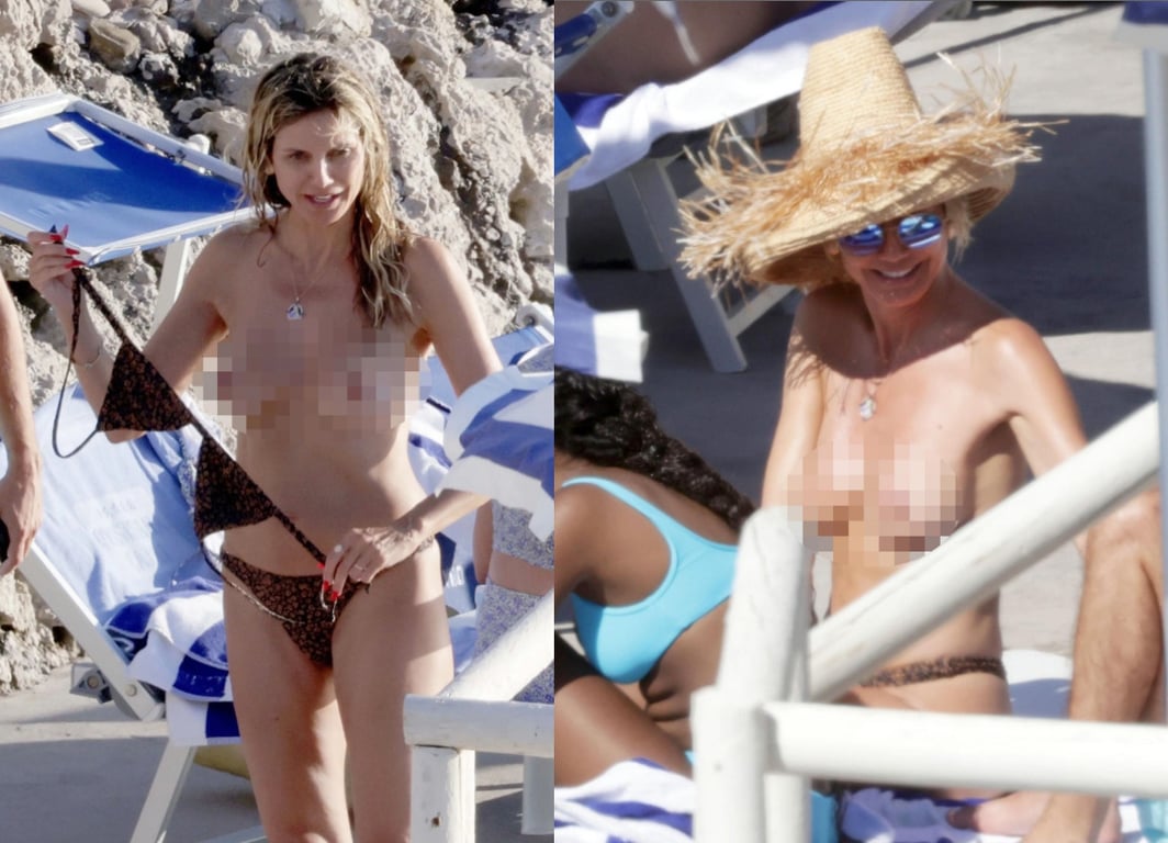 Не приховувала свою красу супермодель і від інших відвідувачів елітного пляжного клубу Il Lido del Faro. Деякий час Гайді засмагала під об'єктивами папараці та очима гостей комплексу. А потім одягнула бюстгальтер та пішла фотографуватися в скелях біля моря. Відверті фотографії у своїх соцмережах 50-річна Клум публікувати не стала.