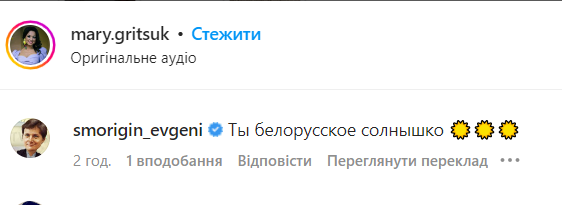 Наприкінці минулого року актор студії "Дизель Шоу" Євген Сморигін склав іспит, аби отримати українське громадянство. Він продовжує підтримувати спілкування з колишньою колегою по шоу, білоруською телеведучою Мариною Грицук.