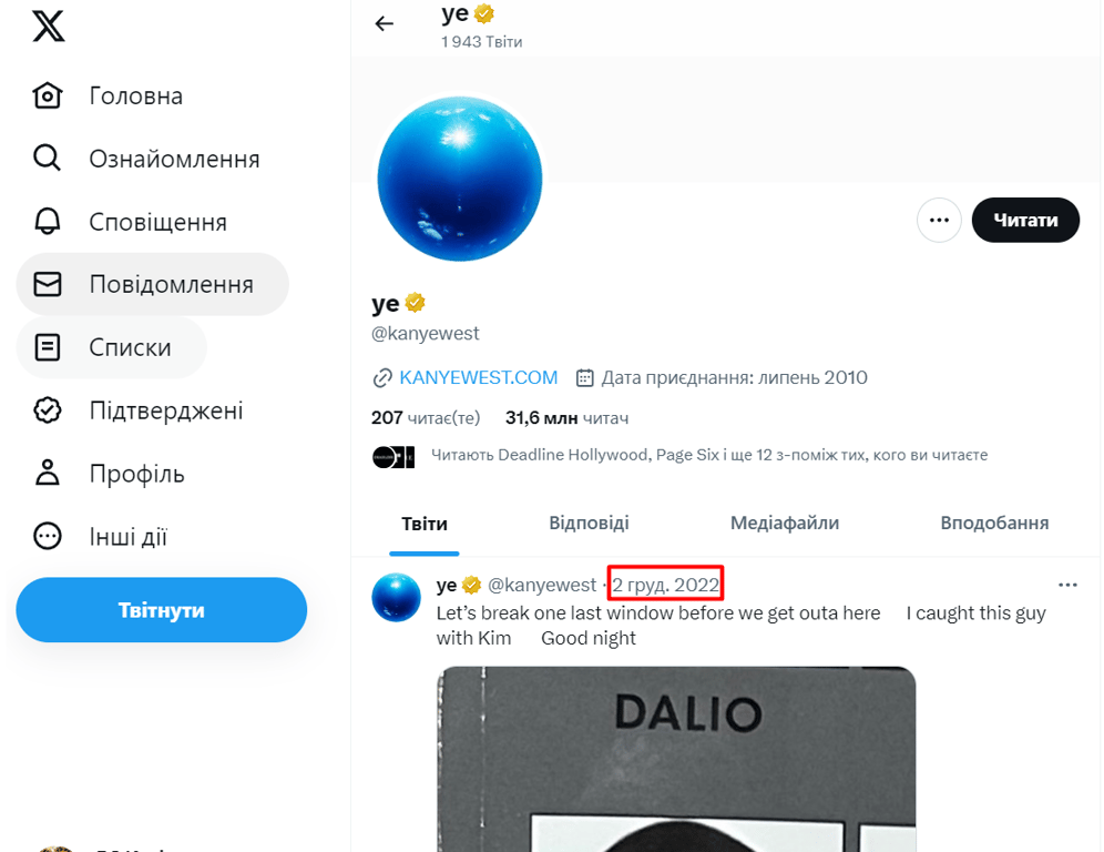 Втім, Каньє не поспішає щось змінювати у своєму Twitter. Він поки що не зробив жодного допису, а останній пост датований початком грудня минулого року. Попри відсутність активності, на сторінку Веста підписані понад 31 млн користувачів соцмережі.
