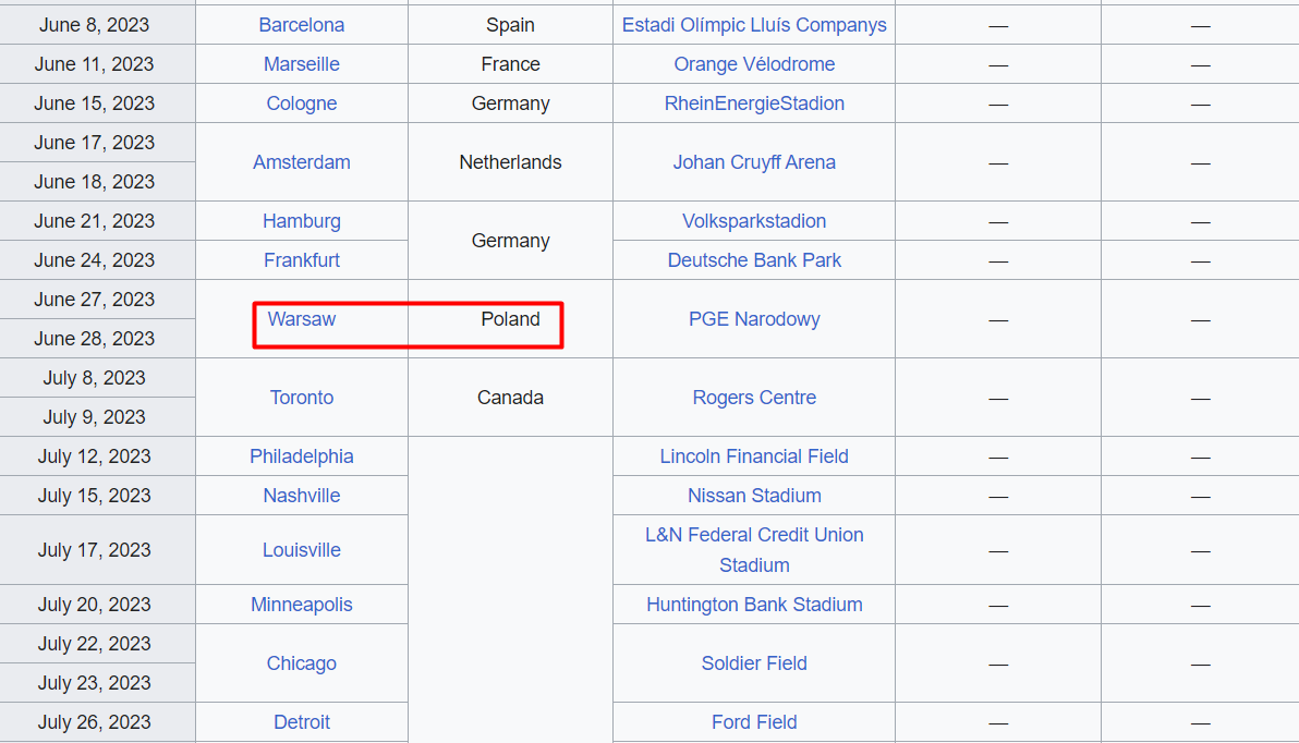Зазначимо, що це одні з останніх концертів Бейонсе в європейській частині туру. 27 та 28 червня рекордсменка премії "Ґреммі" відіграє два концерти у Варшаві.