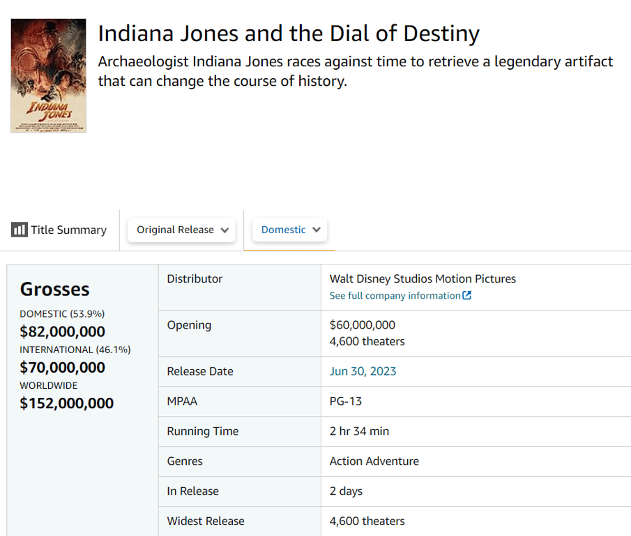 Касові збори нового фільму про Індіану Джонса не виправдали очікувань продюсерів