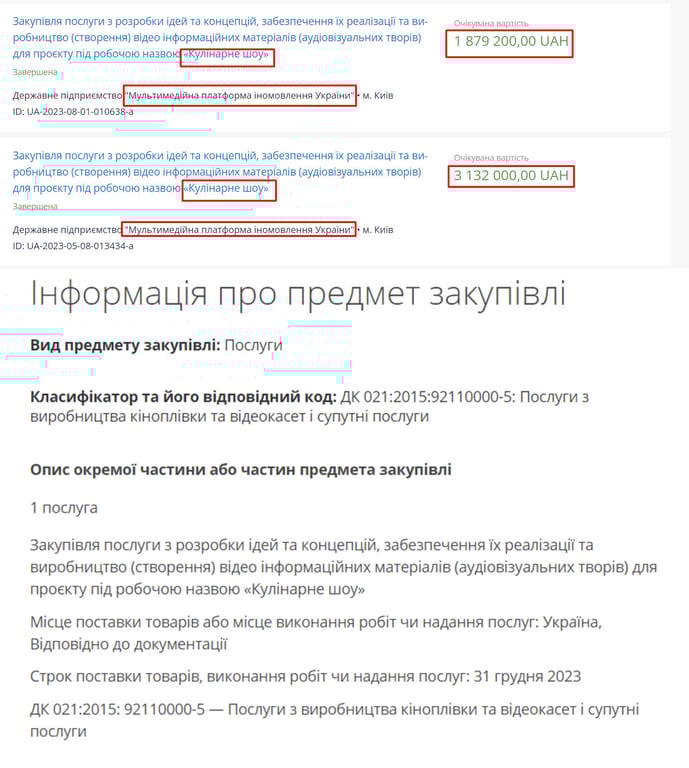 Державне підприємство "Мультимедійна платформа іномовлення України", якому належать, зокрема, телеканали "Дім" та Freedom, ще в травні оголосило тендер на розроблення проєкту під робочою назвою "Кулінарне шоу". Тоді сума була значно вищою.