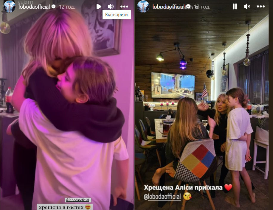До них в гості завітала співачка Світлана Лобода, яка є хрещеною матір’ю старшої доньки зіркового подружжя, 11-річної Аліси. У своїх соцмережах Юла з Анатолічем опублікували зворушливі відео довгоочікуваної зустрічі родичів. Лобода зробила репост у своєму Instagram.
