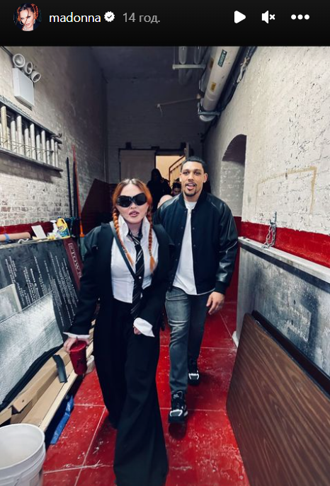Про роман 64-річної співачки та молодого боксера, який тренує дітей зірки, стало відомо на початку березня. Мадонна не рідко публікує контент з черговим бойфрендом. Так, артистка показала фото залаштунків культурної установи.