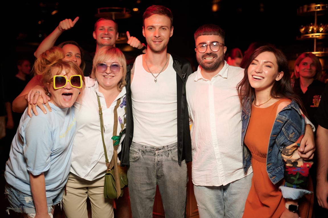 Макс розповідав гостям про нові пісні, спогади та разом пританцьовував під трек. Серед запрошених була й Оля Полякова. Співачка просила на біс увімкнути нову пісню "Не плач", яка їй дуже подобається. Зі сцени Оля привітала Барських та назвала його генієм.