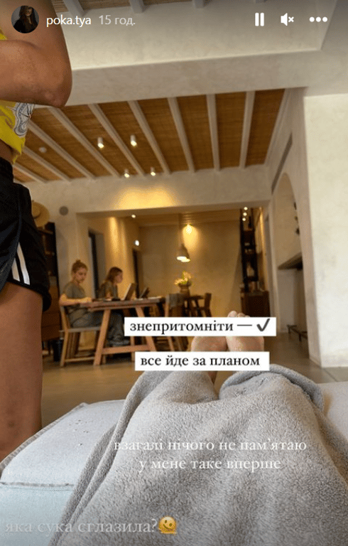 Полтавська повідомила, що вона взагалі нічого не пам’ятає після того, як знепритомніла. Дівчина припускає, що її хтось наврочив у соцмережах. Ймовірно Катерина має на увазі численні сторіз, які вона публікує з відпочинку.
