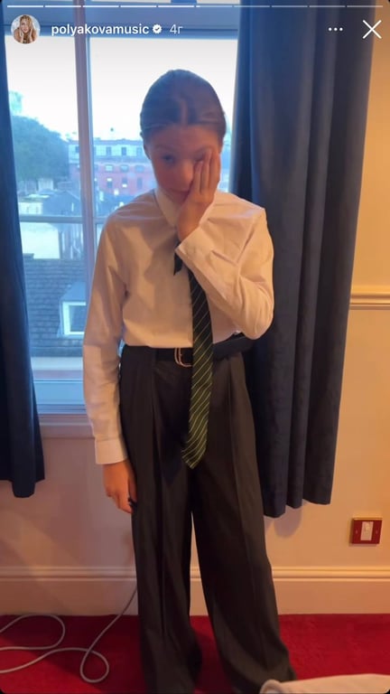 Зараз Полякова приїхала до доньки у Лондон, оскільки 5 жовтня їй виповнюється 12 років. Співачка показала, як Аліса вранці збирається до школи і спитала про її новий костюм, відзначивши чудовий стиль доньки.