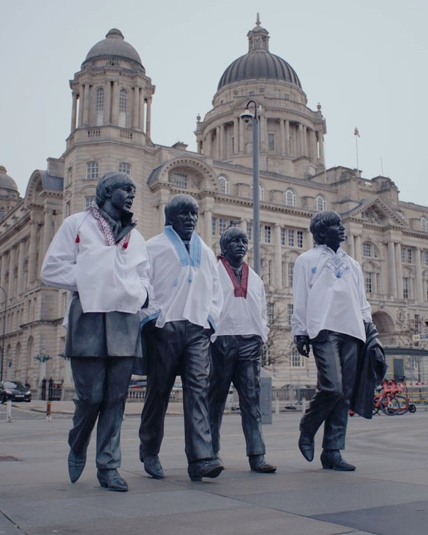 Монумент гурту The Beatles одягнули у вишиванки заради важливої зйомки: якої саме