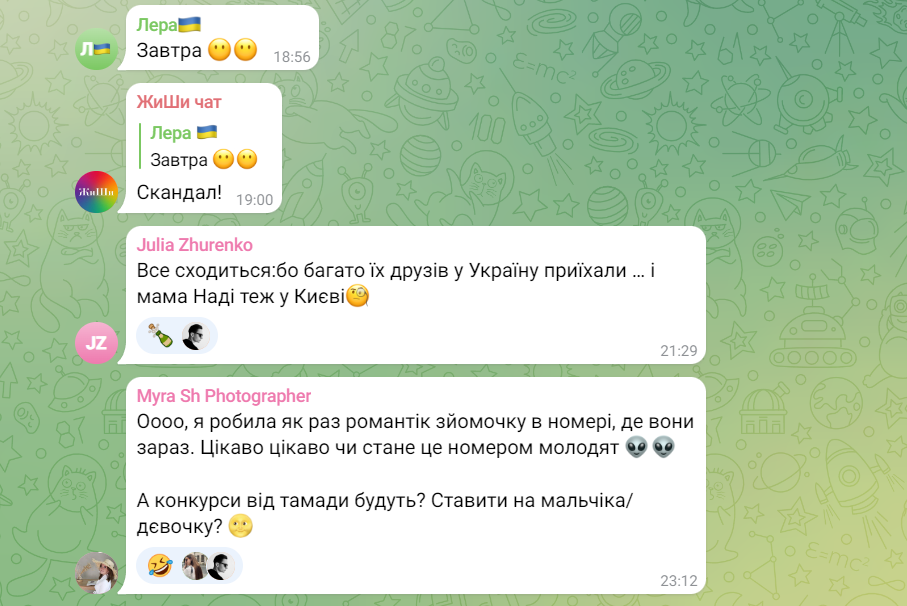 Користувачі месенджера зазначили в коментарях, що це цілком може бути правдою, бо більшість їхніх друзів повернулися до столиці. У Києві зараз і мама Дорофєєвої, пані Ольга.