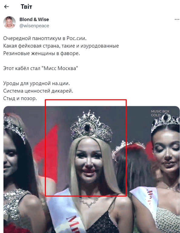 В столиці країни "болот" пройшов конкурс краси "Міс Москва 2023". Переможницею стала 25-річна модель та телеведуча Ангеліна Бреженська. Але далеко не всі, навіть в Росії, оцінили вибір журі.