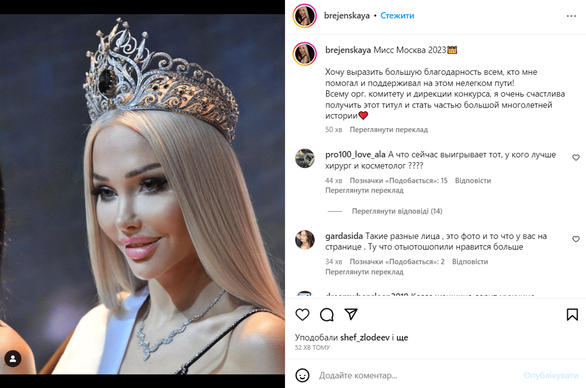 "Надувна лялька": новоспечену "Міс Москва" висміяли в соцмережах