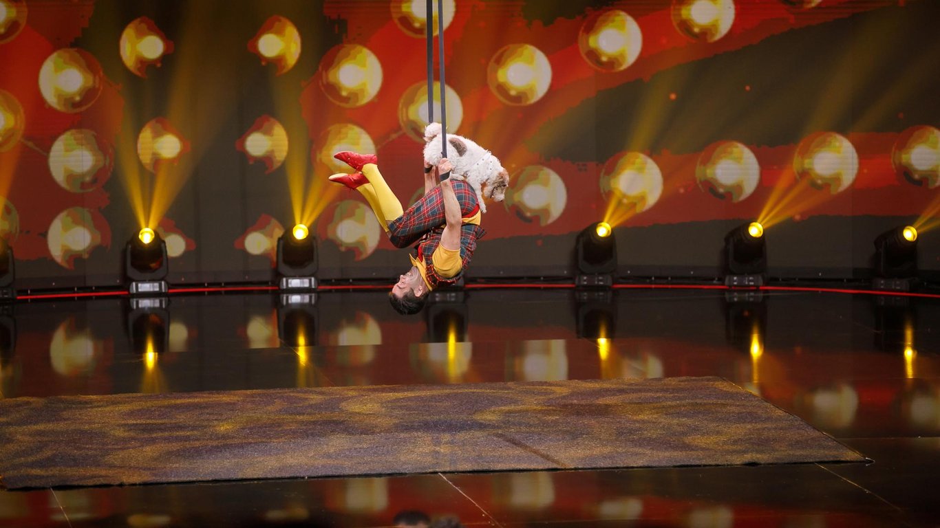 Неповторний номер: українець шокував глядачів повітряною гімнастикою із собаками. Відео