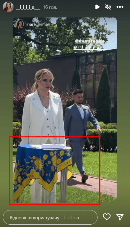 Мурат та Лілія поки що не опублікували професійні фото та відео у своїх соцмережах. Втім діляться контентом від гостей та показують деякі знімки з застілля. Так, наприклад, Лілія не стала приховувати обручку, яку отримала від Налчаджиоглу.