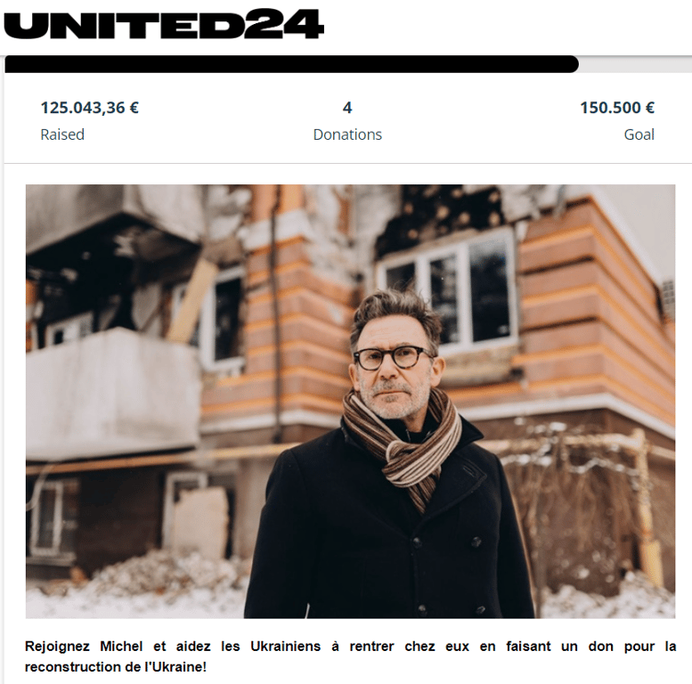 Мішель розпочав збір на відновлення одного з будинків у Ірпені. На це необхідно 150 тисяч євро. Залишилось зібрати 25 тисяч євро.
