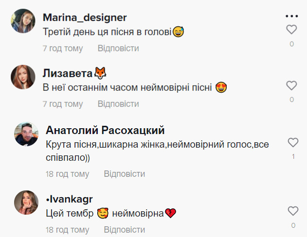Під відео безліч коментарів залишили саме українські користувачі TikTok. Вони в захваті від пісні, а деякі з них переслуховують її раз за разом.