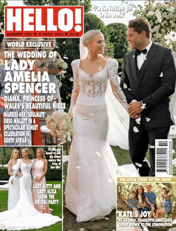 Напередодні племінниця загиблої принцеси Діани, леді Амелія Спенсер, відгуляла вечірку перед весіллям. Після цього кілька днів не було жодних новин ані від неї, ані від її обранця Грега Маллетта. Як з’ясувалось, вони продали ексклюзивні права на публікацію фотографій з весілля відомому глянцю.