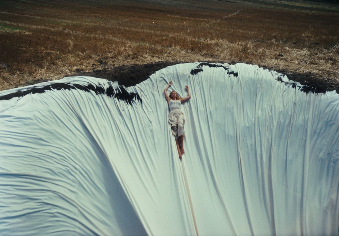 "Зйомки проходили під Києвом влітку. Спеціально для цього режисерська команда викопала в полі велику вирву в вигляді воронки від авіабомби. У кадрі я працювала без допомоги дублерів, виконуючи складні задачі режисера", — прокоментувала прем’єру Полякова.