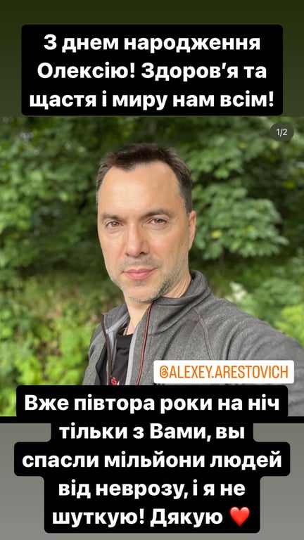 Вчора, 3 серпня, день народження святкував колишній радник Офісу Президента, а нині засновник і викладач школи мислення Олексій Арестович. Автору культової фрази "2-3 тижні" виповнилось 48 років. У своїх соцмережах він зробив десятки репостів публікацій своїх шанувальниць. Теплі слова політичному експерту залишила й співачка Оля Полякова.