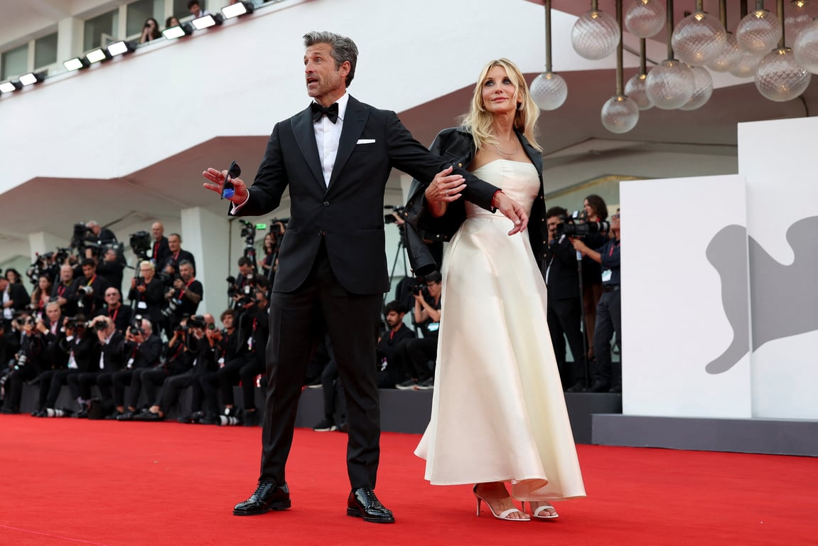 Патрік Демпсі вийшов на червону доріжку в смокінгу від Brunello Cucinelli, краватці-метелику, туфлях в тон і годиннику з червоною смужкою. До нього приєдналася його дружина Джилліан, яка одягла сукню без бретелей кольору слонової кістки в поєднанні з чорною шкіряною курткою.