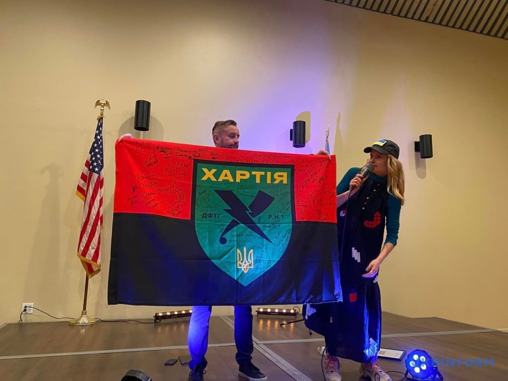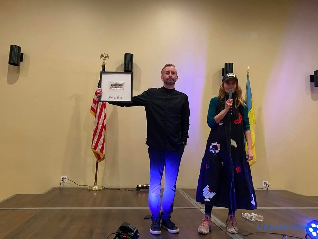 Прапори та книга з підписом Залужного за тисячі доларів: Жадан провів благодійний вечір у США