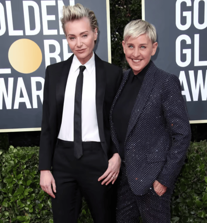Дедженерес перебуває у стосунках із зіркою серіалів "Еллі Макбіл" та "Уповільнений розвиток" з 2004 року. Після скасування заборони на одностатеві шлюби в Каліфорнії в травні 2008-го Еллен оголосила, що вони з Поршою заручені, і вручила їй обручку з рожевим діамантом у три карати. 16 серпня 2008 року вони одружилися вдома, запросивши 19 гостей, включаючи їх мам.