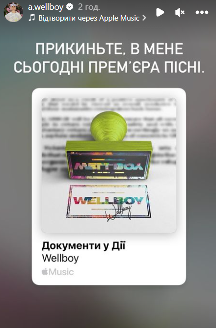 Продюсеры Wellboy представили новую композицию "Документи у Дії", о чем певец Антон Вельбой узнал уже после релиза. Артист единолично разорвал рабочие отношения с лейблом Papa Music и продолжает исполнять хиты под новым сценическим именем Anton Velboy. В своих соцсетях 23-летний певец обратился с предложением к продюсерам.