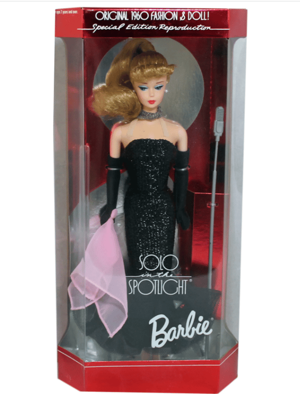 В 1996 году компания перевыпустила серии коллекционных Барби, среди которых и эта — в черном платье. В наборе бонусом идет черно-белый купальник в стилистике, модной в 1960-х годах.