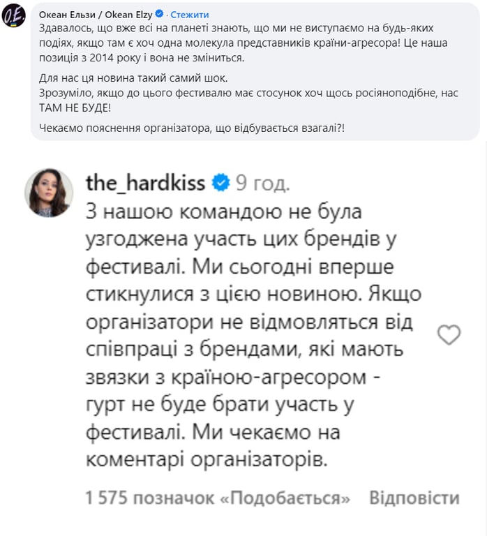На днях в столице Варшавы должен был пройти масштабный музыкальный фестиваль Easy Busy Fest, в лайнапе которого заявлены группы "Океан Ельзи", The Hardkiss, "Ляпис Трубецкой", певцы Владимир Дантес, Антон Вельбой, Yaktak и другие. Однако только сейчас выяснилось, что фестиваль частично проспонсорировали российские компании.