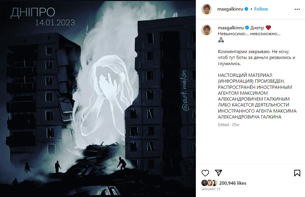 Напомним, осенью прошлого года министерство юстиции РФ внесло юмориста Максима Галкина в список физических лиц, выполняющих функцию "иностранного агента". Все это время россиянин, который вместе с семьей сейчас живет в Израиле, подписывает материалы в соцсетях как "иноагент", потому что получит штраф и новое судебное дело.