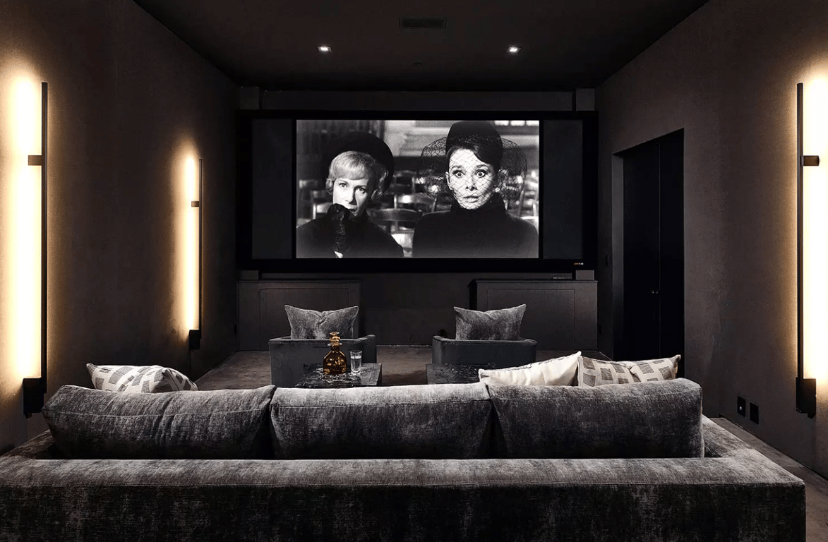 В доме есть свободные просторы с окнами от пола до потолка, импортным камнем, дубовым полом и другими контрастными акцентами. Также есть шикарный домашний кинотеатр. На территории расположен гостевой дом.