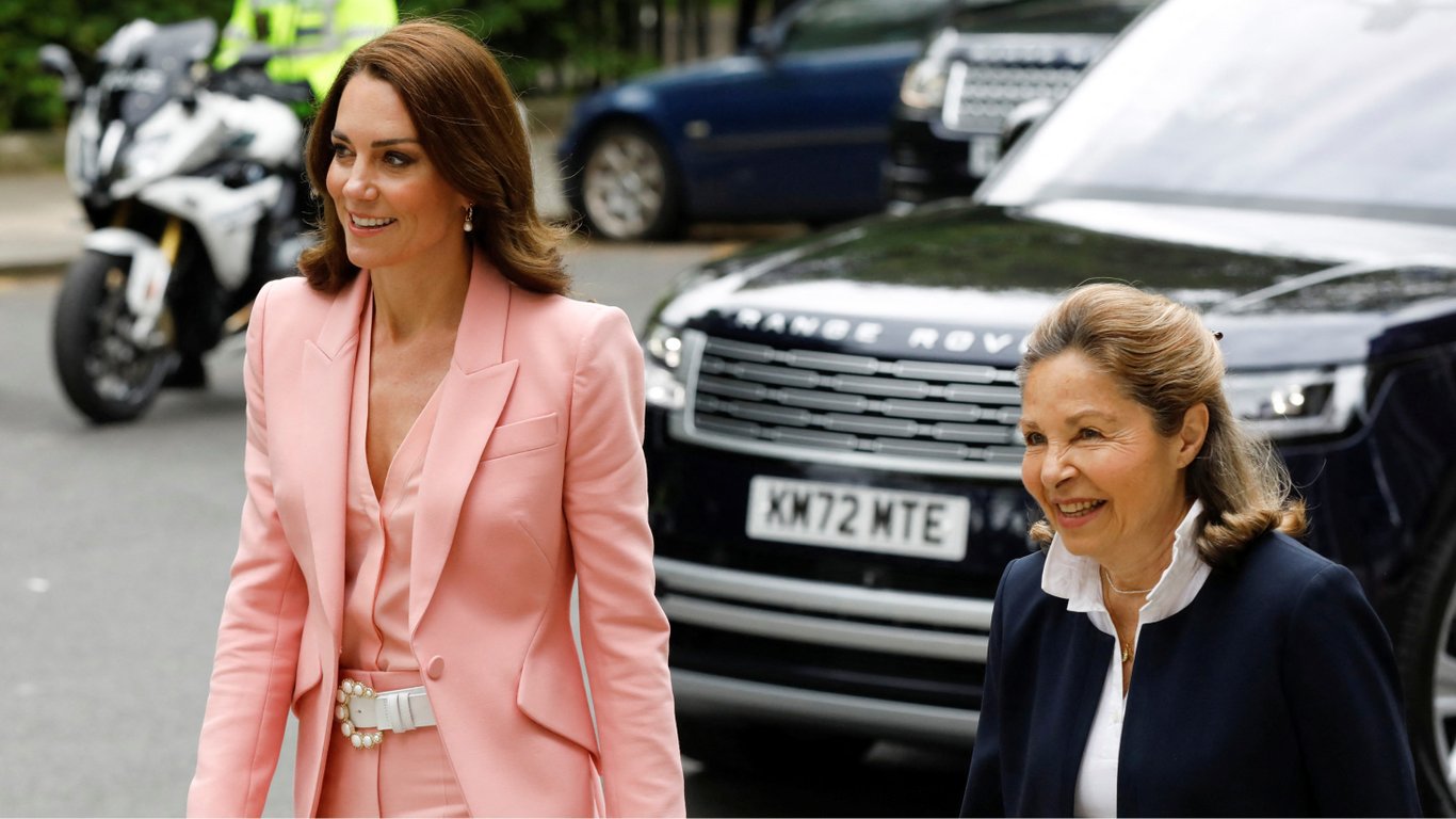 Ранее Кейт Миддлтон уже несколько раз надевала этот костюм — в том числе для визита в Королевский институт в прошлом году. В этот раз принцесса Уэльская дополнила костюм поясом лондонского дизайнера Камиллы Элфик.