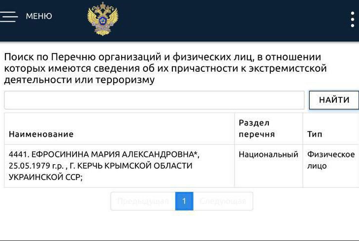 Ефросинина также занесена в базу розыска мвд страны-террориста. В то же время статью уголовного кодекса, по которой Ефросинина объявлена в рф в розыск, оккупанты не указывают. Шоувумен и общественный деятель пока на информацию из россии не отреагировала.