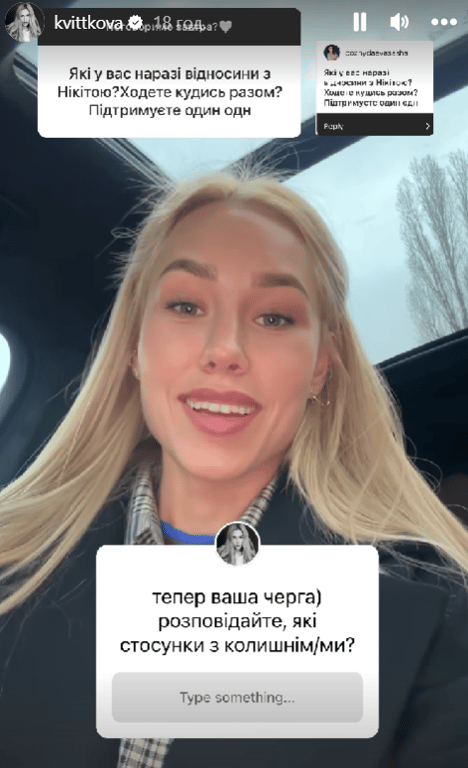 В прошлом месяце единственные участники украинского шоу "Холостяк", которые не только поженились, но и родили ребенка, шоумен Никита Добрынин и блогер Даша Квиткова ошеломили новостью о своем расставании. Звездная парочка живут отдельно. Поклонники задали вопрос Даше, какие у нее сейчас отношения с Никитой.