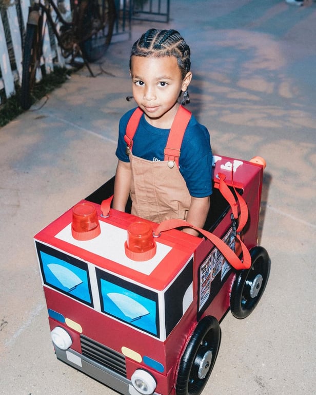 Первый образ Саама был черепашка-ниндзя, для которого мальчику даже сделали профессиональный макияж. Второй образ — пожарного.