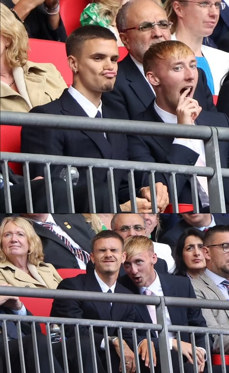 20-летний сын Дэвида и Виктории Бекхэмов для матча выбрал деловой стиль. Парень надел темно-синий костюм и галстук. Но внимание папарацци привлекла мимика звездного сына.