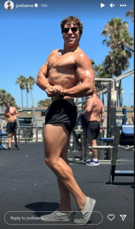 25-летний бодибилдер позировал на улице под солнцем, воспроизводя позы, подобные тем, которые делал его отец Арнольд Шварценеггер. Подрабатывающий агентом по недвижимости парень часто показывает своим подписчикам свой прогресс в спорте.